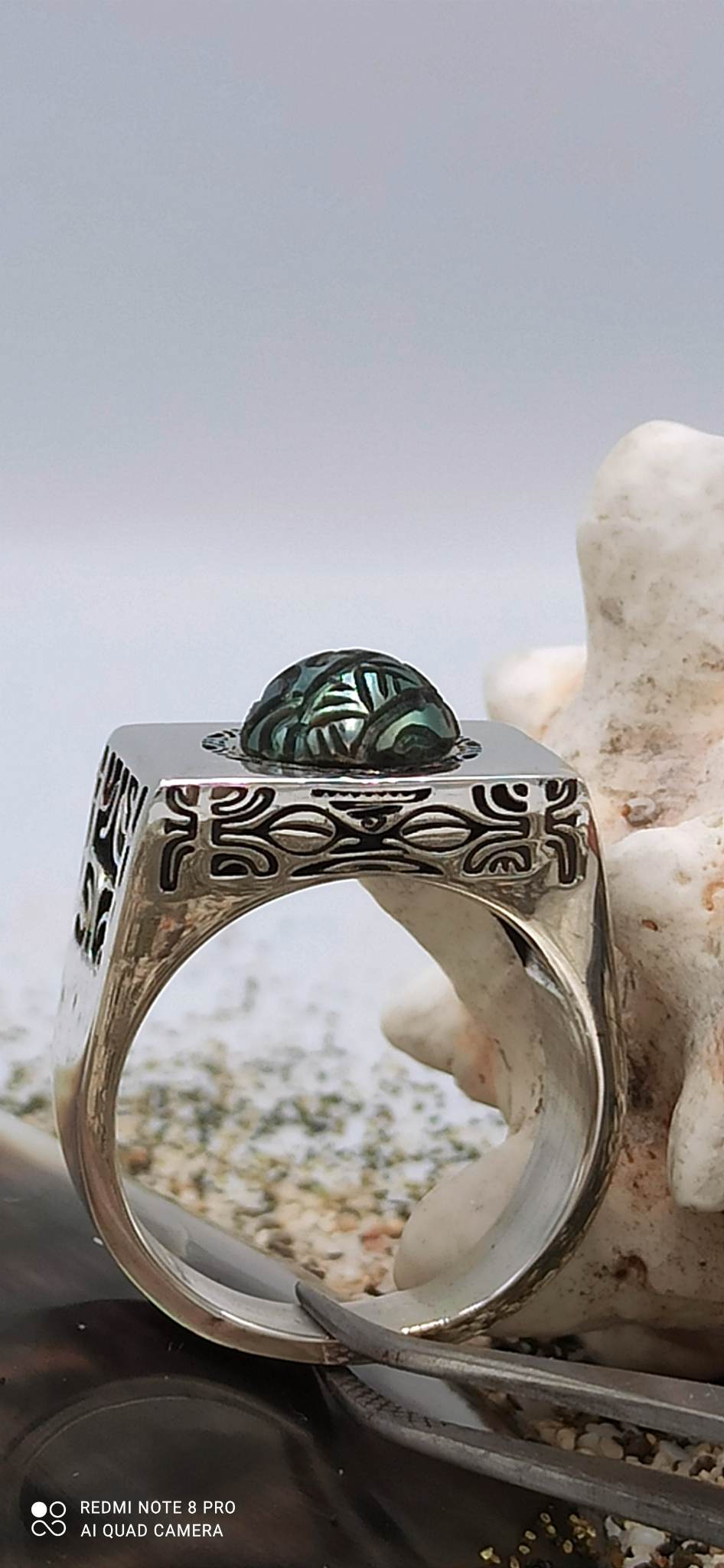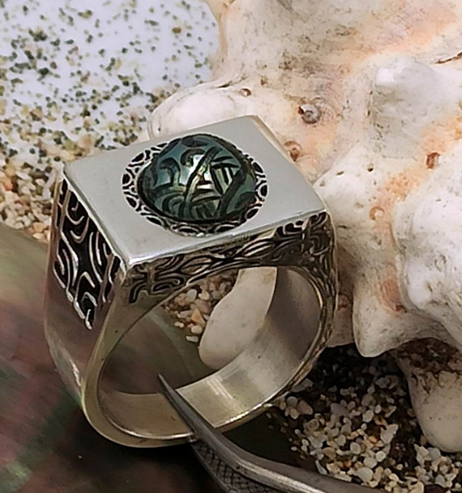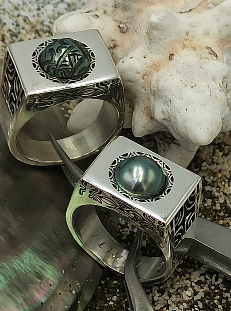 Cette superbe chevalière en acier inoxydable est en série limitée. Aux motifs Polynésiens, elle a été imaginé et réalisé par les ateliers d’Oz Tahiti. Merci de préciser votre taille de doigt pour que nous puissions la personnaliser. Chaque modèle est fabriqué à la main et nécessite un temps de réalisation plus long de par sa complexité. Comptez un délais de 2 à 3 semaines. Gravure anneaux intérieur sur demande. Gravure perle sur demande