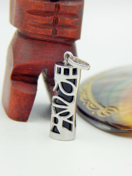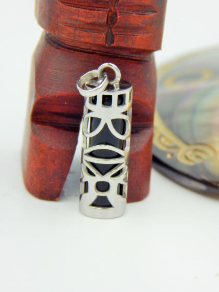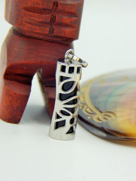 Pendentif tube motif « tiki » en acier inoxydable finition brillant. Ce jolie tiki est traversé par un mi tube noire en onyx…livré avec cordelette ajustable. Fabrication OZ TAHITI…Disponible sur rendez vous à l’atelier OZ TAHITI situé au 233 chemin du haut Bresis, 30100 Alès…renseignements au 064287